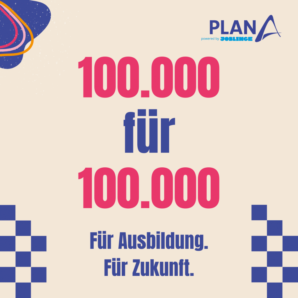Mit dem Upload erteilen Sie JOBLINGE die Freigabe das Foto im Rahmen der Kampagne 100.000 für 100.000 auf allen Kommunikationskanälen (Website, Social Media, Print/Events) zu verwenden.